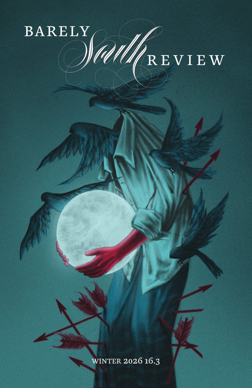 Currently looking for volunteer readers - email Evelyn at managingeditor@barelysouthreview.com if interested