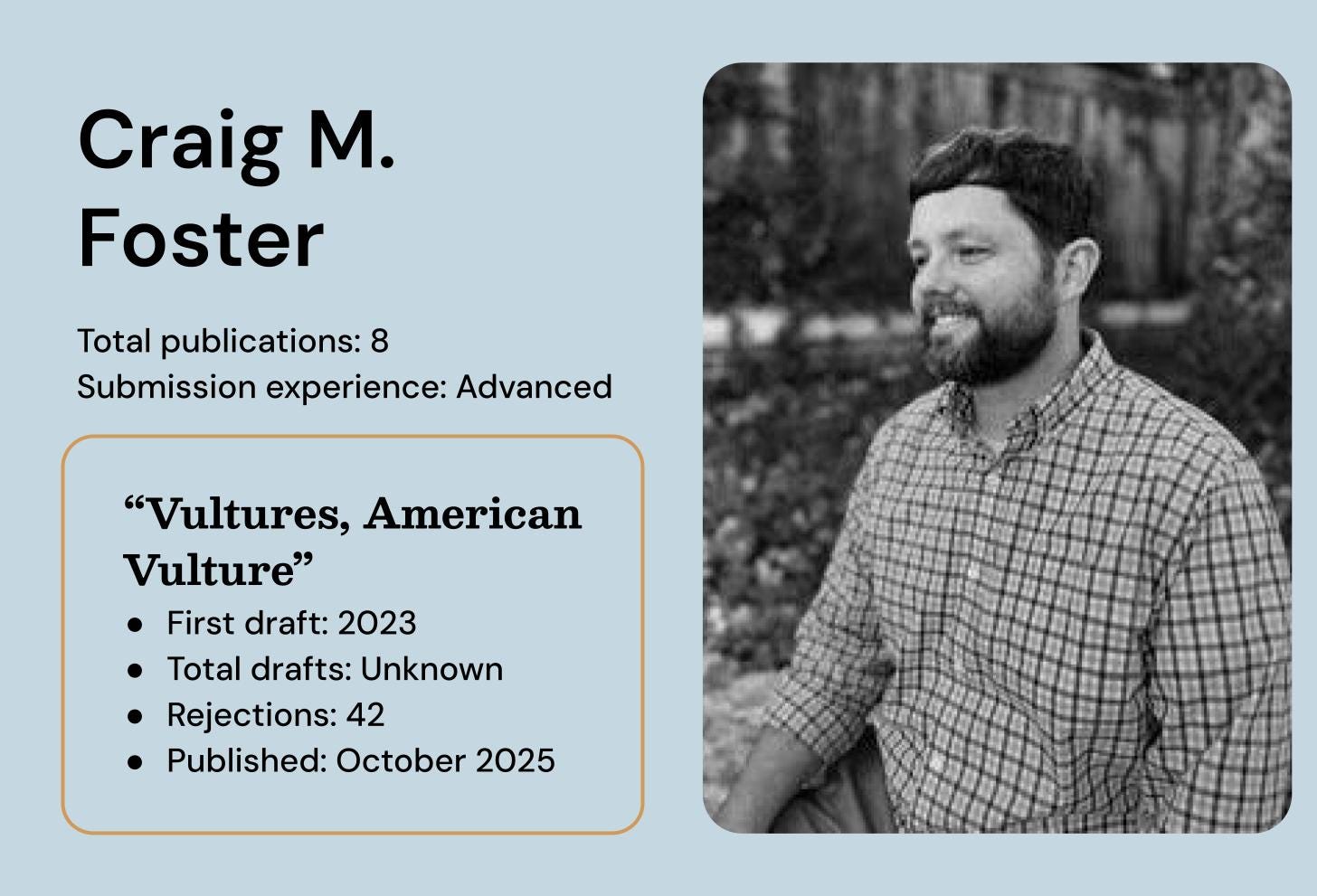 This Q&A with Craig will focus on his fiction story “Vultures, American Vulture,” (read it here) published in Quarterly West in October 2025.
