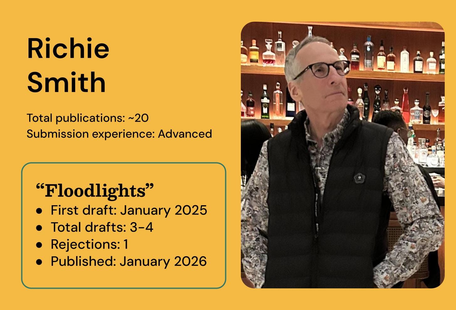 👋 Meet Richie Smith, a New York artist, writer, musician, and cardiologist at Mount Sinai Doctors in New York. His work has appeared or is forthcoming in The Brussels Review, X-R-A-Y Literary Magazine, Confrontation Magazine, and The Banyan Review, among others. He is currently completing his first novel. Find him on Instagram @smithheartpoet.